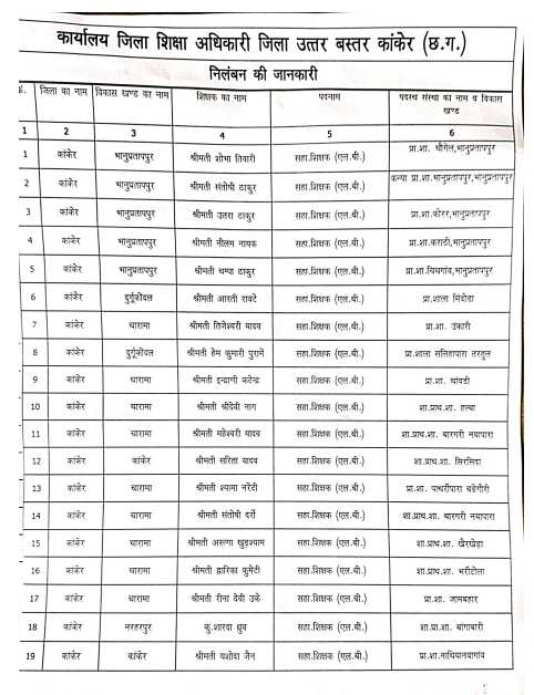 कांकेर में युक्तियुक्तकरण के तहत ज्वाइनिंग न देने पर 38 अतिशेष शिक्षक निलंबित, शिक्षा विभाग की सख्त कार्रवाई
