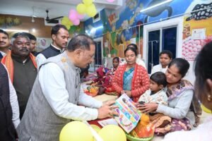 रायपुर। मुख्यमंत्री विष्णुदेव साय ने आज सामुदायिक स्वास्थ्य केंद्र फरसाबहार में आयोजित कार्यक्रम के दौरान फरसाबहार के साथ-साथ कुनकुरी एवं मनोरा में स्थापित किए गए पोषण पुनर्वास केंद्रों का शुभारंभ किया। इन तीनों पुनर्वास केंद्रों को 10-10 बिस्तरों की सुविधा के साथ प्रारंभ किया गया है। इनके शुभारंभ के साथ ही जशपुर जिले में पोषण पुनर्वास केंद्रों की संख्या 6 हो गई है। इस दौरान मुख्यमंत्री ने पुनर्वास केंद्रों में भर्ती कुपोषित बच्चों की माताओं से बच्चों के स्वास्थ्य और उनके ईलाज के बारे में जानकारी ली। मुख्यमंत्री इस मौके पर बच्चों के लिए पोषण कीट के साथ खिलौने भी प्रदान किए।
