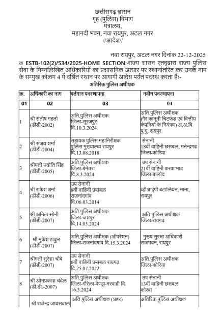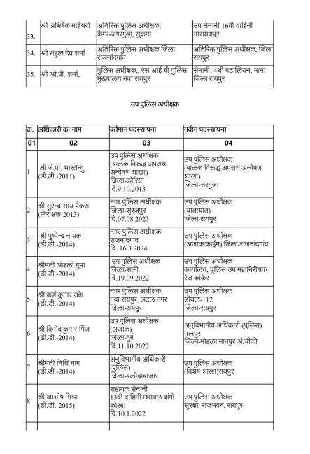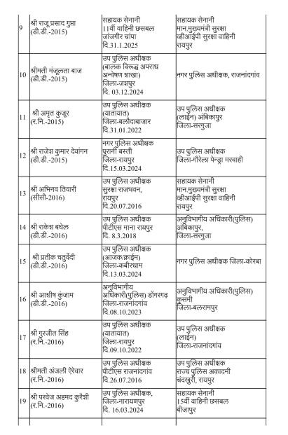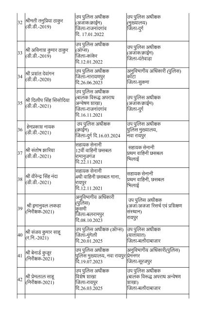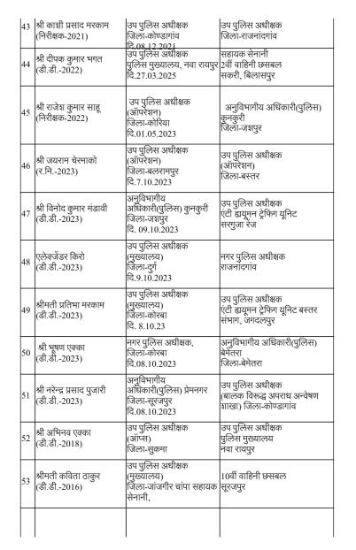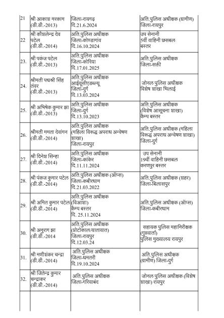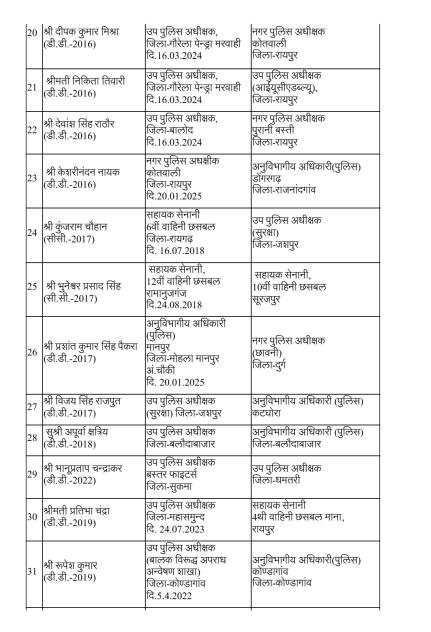 रायपुर। राज्य सरकार ने पुलिस मकहमे में बड़ी सर्जरी करते हुए राज्य पुलिस सेवा के 95 अधिकारियों का तबादला किया है। गृह (पुलिस) विभाग की ओर से जारी आदेश के मुताबिक 35 अतिरिक्त पुलिस अधीक्षक और 60 डीएसपी स्तर के अफसरों को इधर से उधर किया गया है।