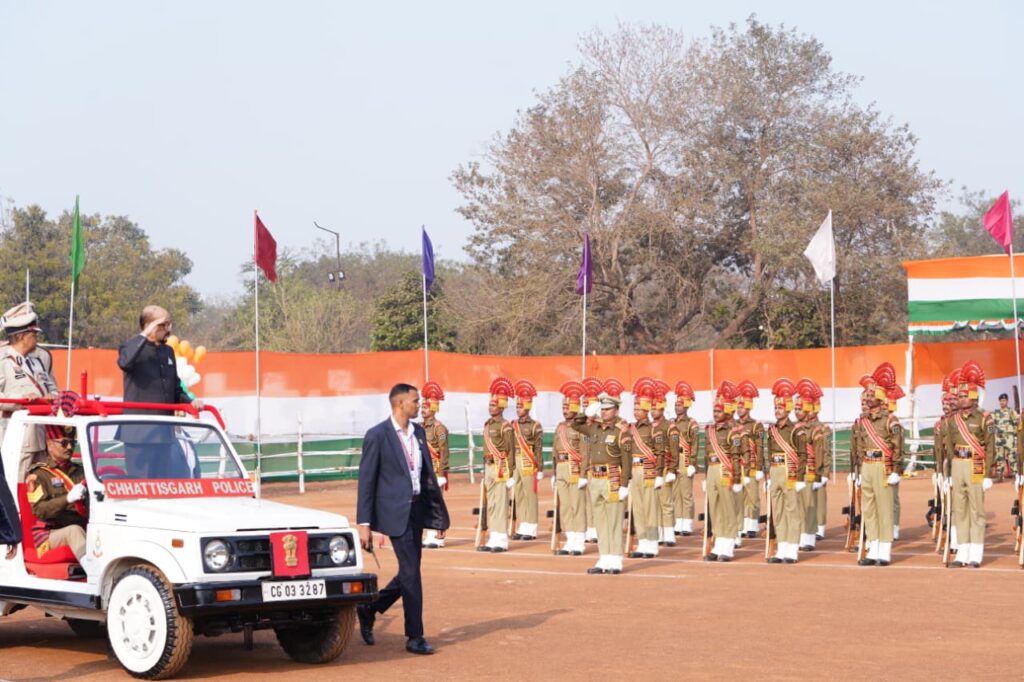 रायपुर। गणतंत्र दिवस के अवसर पर राज्यपाल रमेन डेका द्वारा आज यहां राजधानी रायपुर में पुलिस परेड ग्राउंड में राष्ट्रीय ध्वज फहराया गया और परेड की सलामी ली गई। परेड निरीक्षण के दौरान मुख्य सचिव विकास शील और पुलिस महानिदेशक अरूण देव गौतम भी उपस्थित थे।