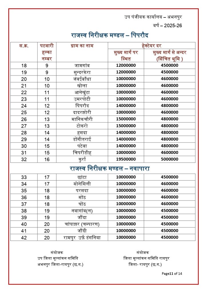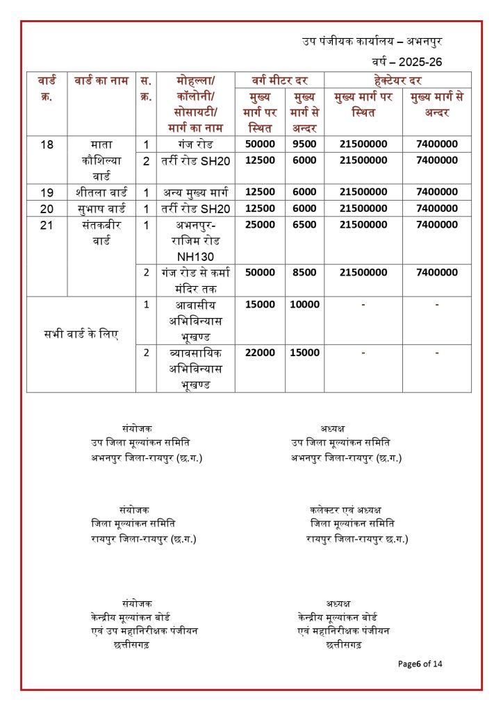रायपुर। छत्तीसगढ़ में जमीन की नई संशोधित गाइडलाइन दर जारी हो गई है. राज्य की जिला मूल्यांकन समितियों से प्राप्त प्रस्तावों के आधार पर जमीन की नई गाइडलाइन दरों को मंजूरी देने के साथ प्रकाशित कर दिया गया है. नई गाइडलाइन में शहरी के मुकबाले ग्रामीण क्षेत्रों की दर में भारी कमी आई है. नई संशोधित गाइडलाइन दरें 30 जनवरी 2026 से प्रभावशील हो गई हैं.