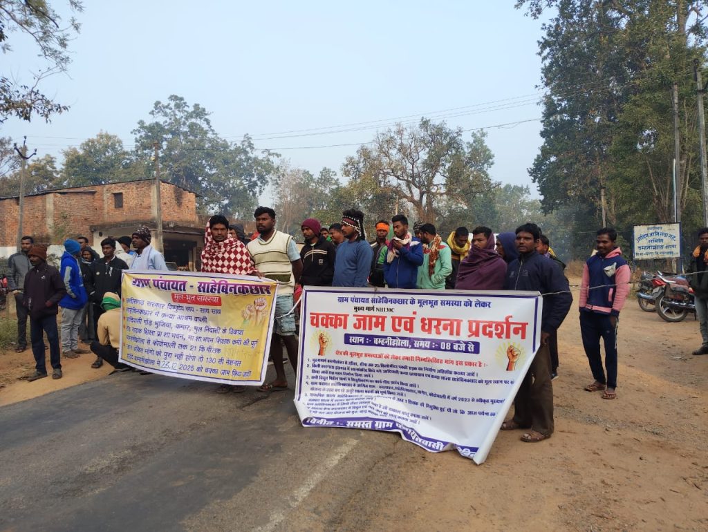 गरियाबंद। जिले के उदंती-सीता नदी अभ्यारण्य के कोर जोन में स्थित साहेबीन कछार गांव के 200 से ज्यादा ग्रामीण सड़क पर उतर आए हैं. शिक्षक, सड़क और स्वास्थ्य जैसी बुनियादी सुविधाओं की मांगें पूरी न होने से नाराज ग्रामीणों ने मंगलवार सुबह नेशनल हाईवे-130C पर पहुंचकर चक्का जाम कर दिया. हाईवे जाम होने से दोनों ओर यात्री बसों समेत अन्य वाहनों की लंबी कतारें लग गई हैं. ग्राम प्रमुख अर्जुन नायक और रूपसिंह मरकाम के नेतृत्व में यह धरना-प्रदर्शन किया जा रहा है. इस दौरान मौके पर इंदागांव पुलिस पहुंचकर ग्रामीणों को समझाने का प्रयास कर रही है. हालांकि बार-बार प्रशासनिक आश्वासनों से थक चुके ग्रामीण इस बार अपनी मांगें पूरी होने पर ही प्रदर्शन खत्म करने की जिद पर अड़े हैं.
