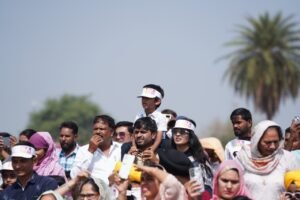 एयर शो में “सूर्यकिरण” की टीम के नौ हॉक-मार्क-123 फाइटर विमानों ने आसमान में हार्ट, डायमंड, लूप, ग्रोवर, डान लाइट, कॉम्बैट तेजस जैसे शानदार फार्मेशन बनाकर लोगों को रोमांचित किया। नीले आसमान में उड़ते लाल-सफेद जेट विमानों द्वारा तिरंगे की आकर्षक ट्रेल छोड़ने पर सेंध जलाशय परिसर तालियों और जय-हिंद के नारों से गूंज उठा। हज़ारों की संख्या में मौजूद नागरिक, युवा और बच्चे लगातार विमानों की कलाबाजियों को अपने कैमरों और मोबाइलों में कैद करते रहे।
